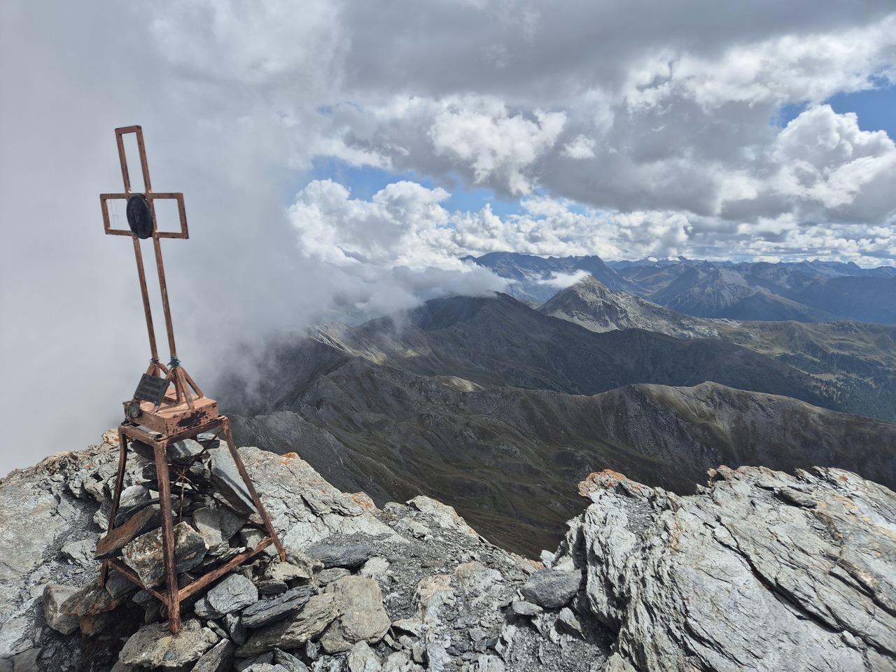 Vf. Gran Queyron, 3060m, pe granita franco-italiana. Este ceata spre Italia si clar spre Franta.