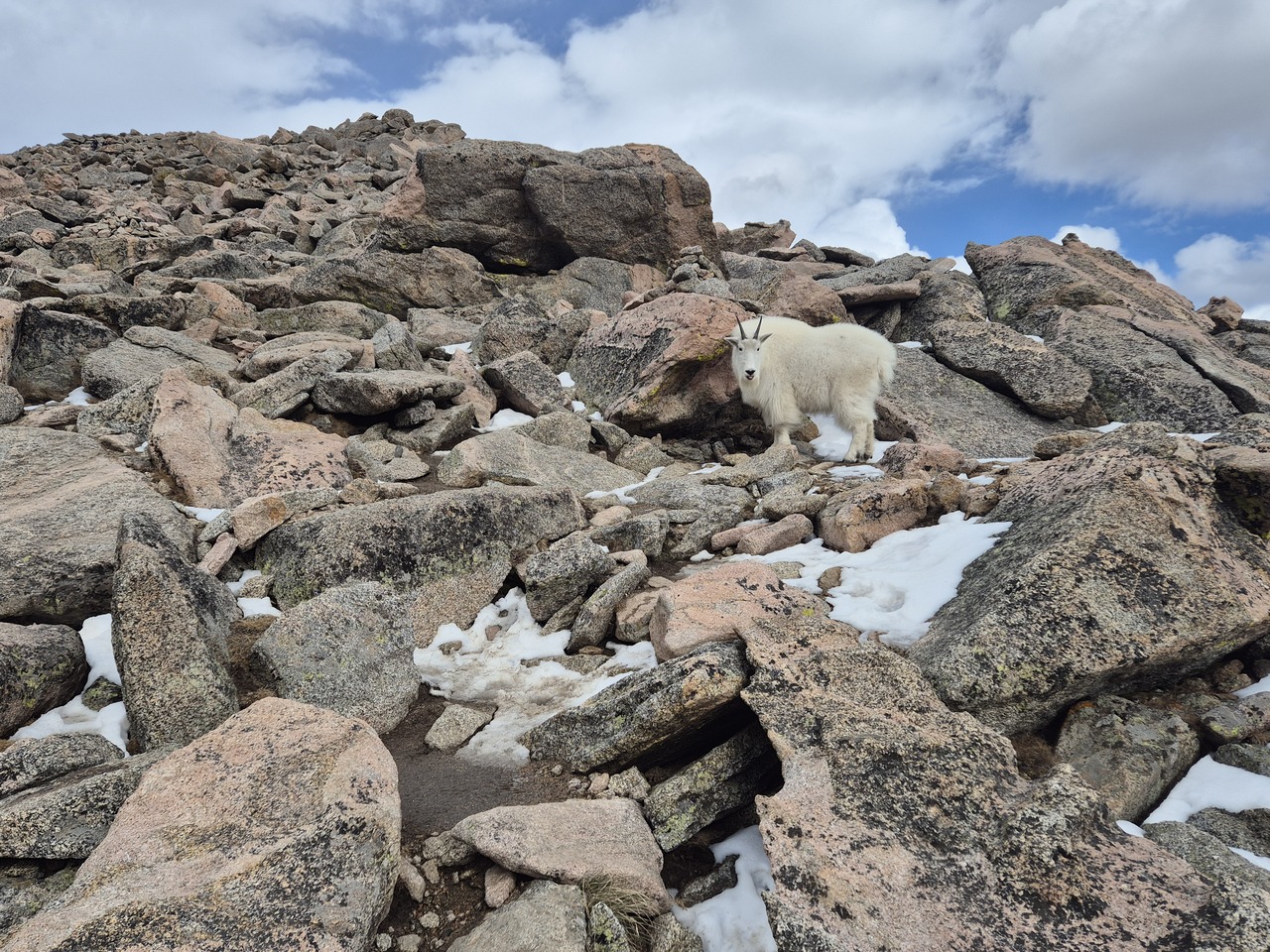 Din platouas, de la circa 4200m ni s-a parut ca vedem un caine alb pe versant; cand ne-am apropiat... ce sa vezi, era o capra!