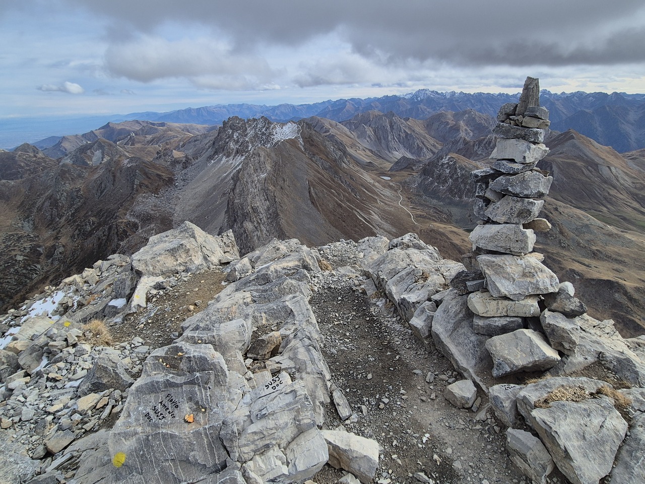 Cele doua varfui gemene Becco Grande sunt in centrul imaginii. Vederea inversa, muntele pe care sunt acum vazut de acolo:
