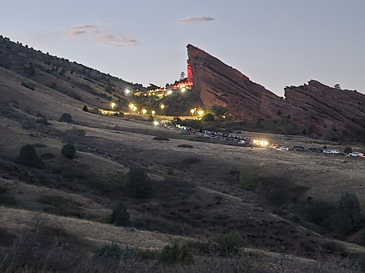 Pe versantul Mt. Morisson dinspre Denver se afla Red Rocks Amphiteatre - un amfiteatru natural care a fost amenajat in spatiu de concerte in aer liber. Si asta-seara era un concert.