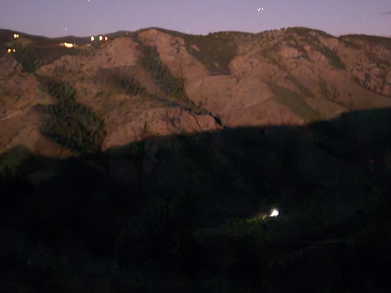 Acest versant este pe partea opusa fata de Denver. Partea superioara este luminata de luna, aflata in spatele meu, in timp ce mai jos este umbra coamei pe care ma aflu.