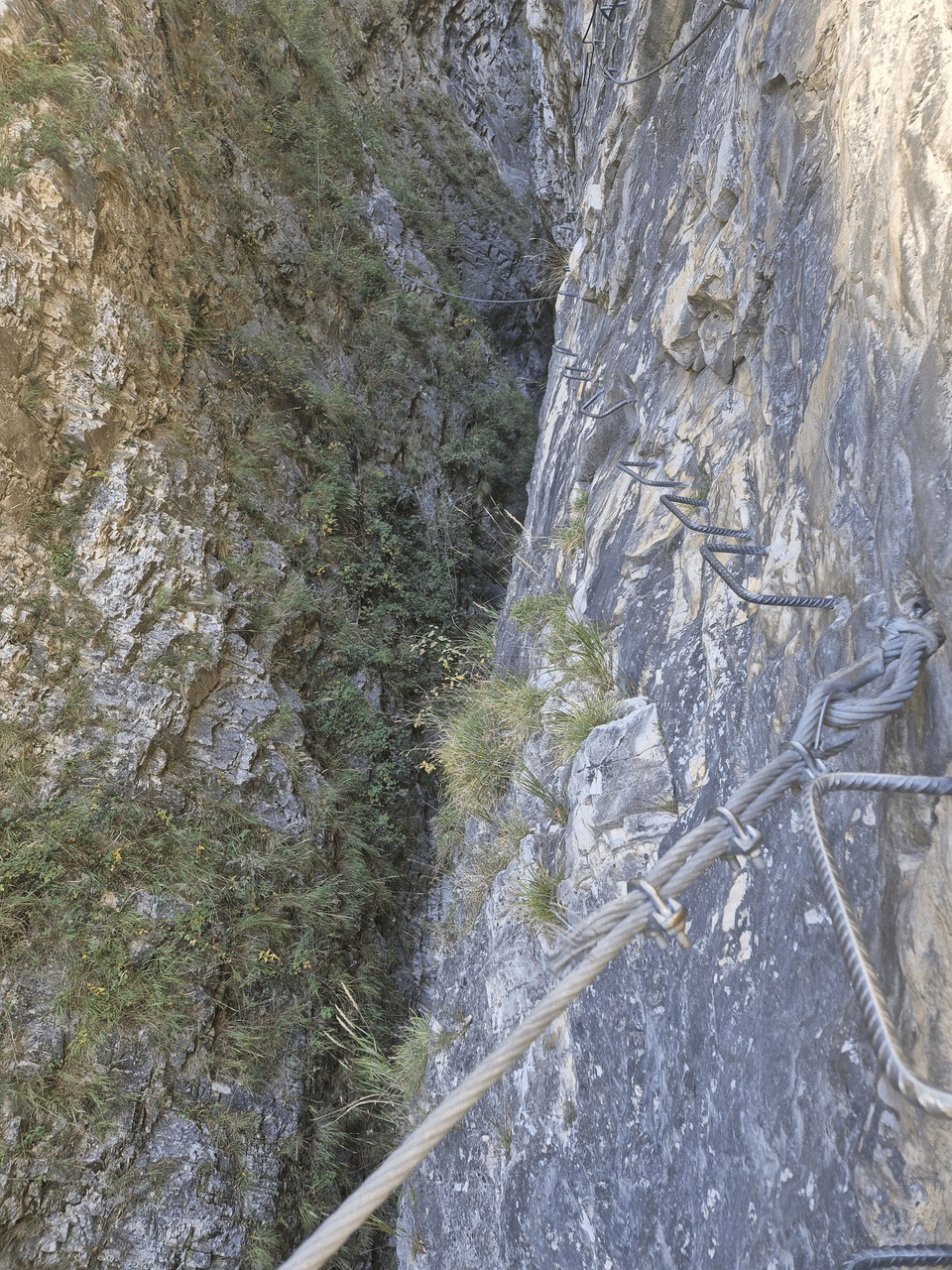 Se merge o bucata orizontal pe perete si apoi se trece pe cel de-al doilea pod, vizibil si el.