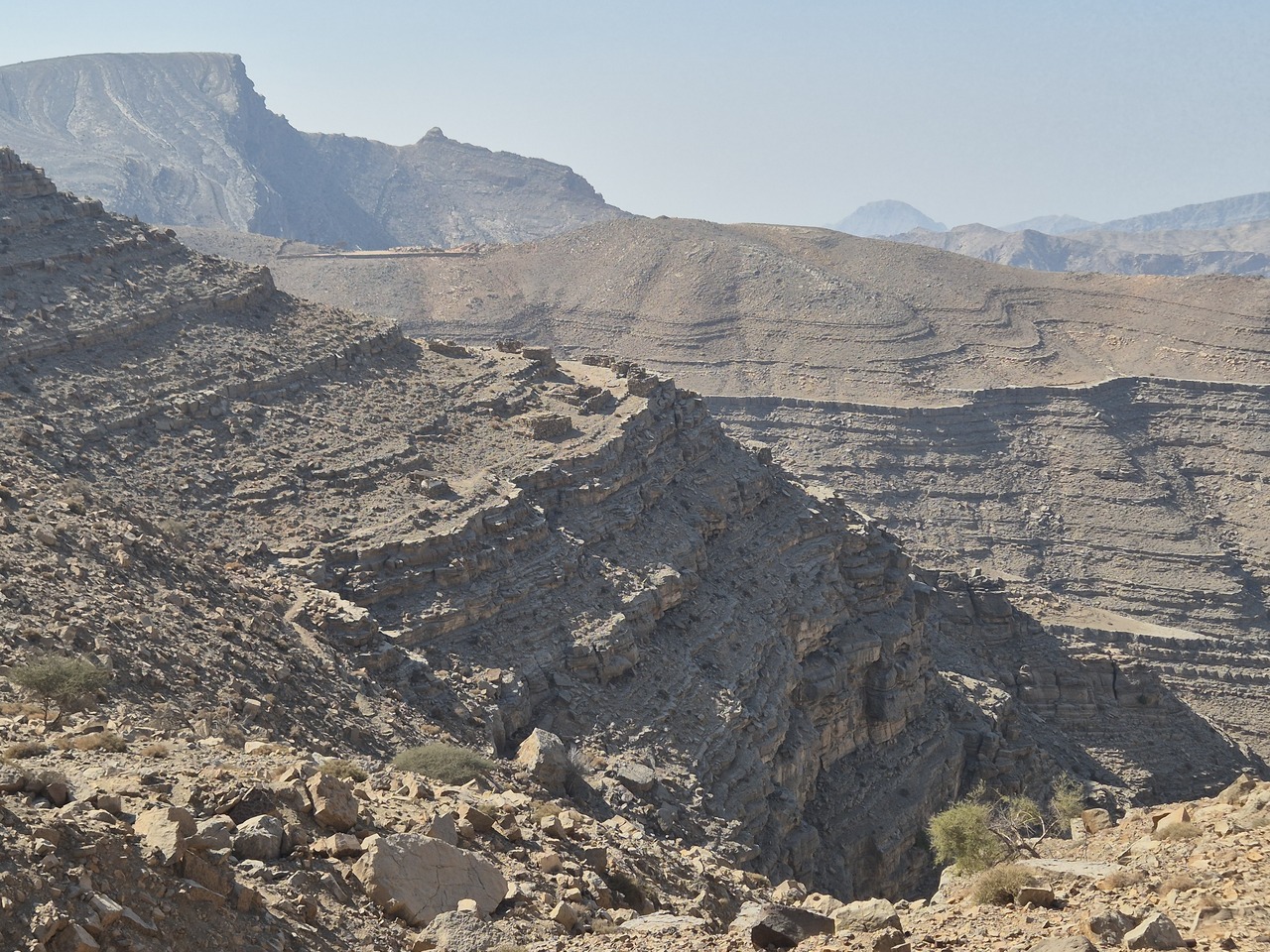 In dreapta-jos: wadi-ul prin care voi cobori. In centru-stanga: Ruinele unor case aflate pe marginea unei prapastii.