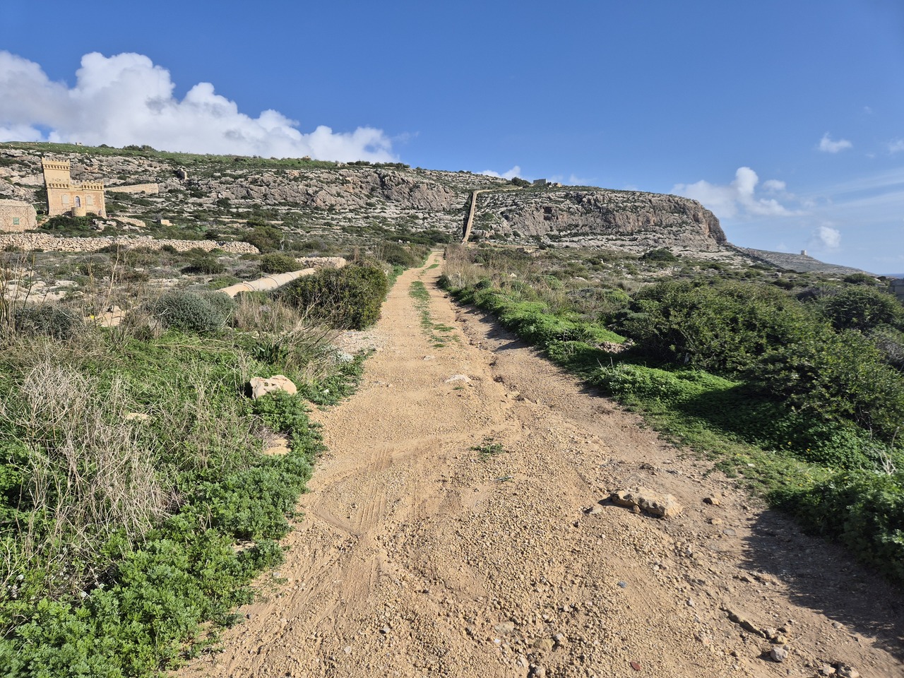 Dupa ce am mers un pic prin Ghar Lapsi trebuia sa ajung la soseaua asfaltata de pe platou; parea o scurtatura sa o iau pe acest drum si apoi apeductul betonat din fundal, asa ca iata-ma incercand.