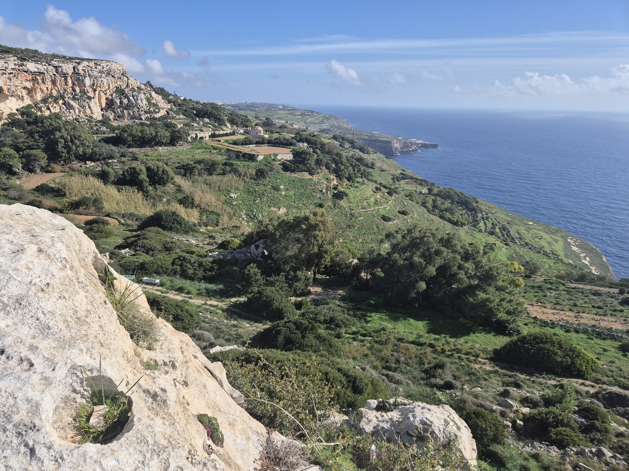 Foate departe se poate ghici balonul alb de peste Hagar Qim (sau Mnejdra?)