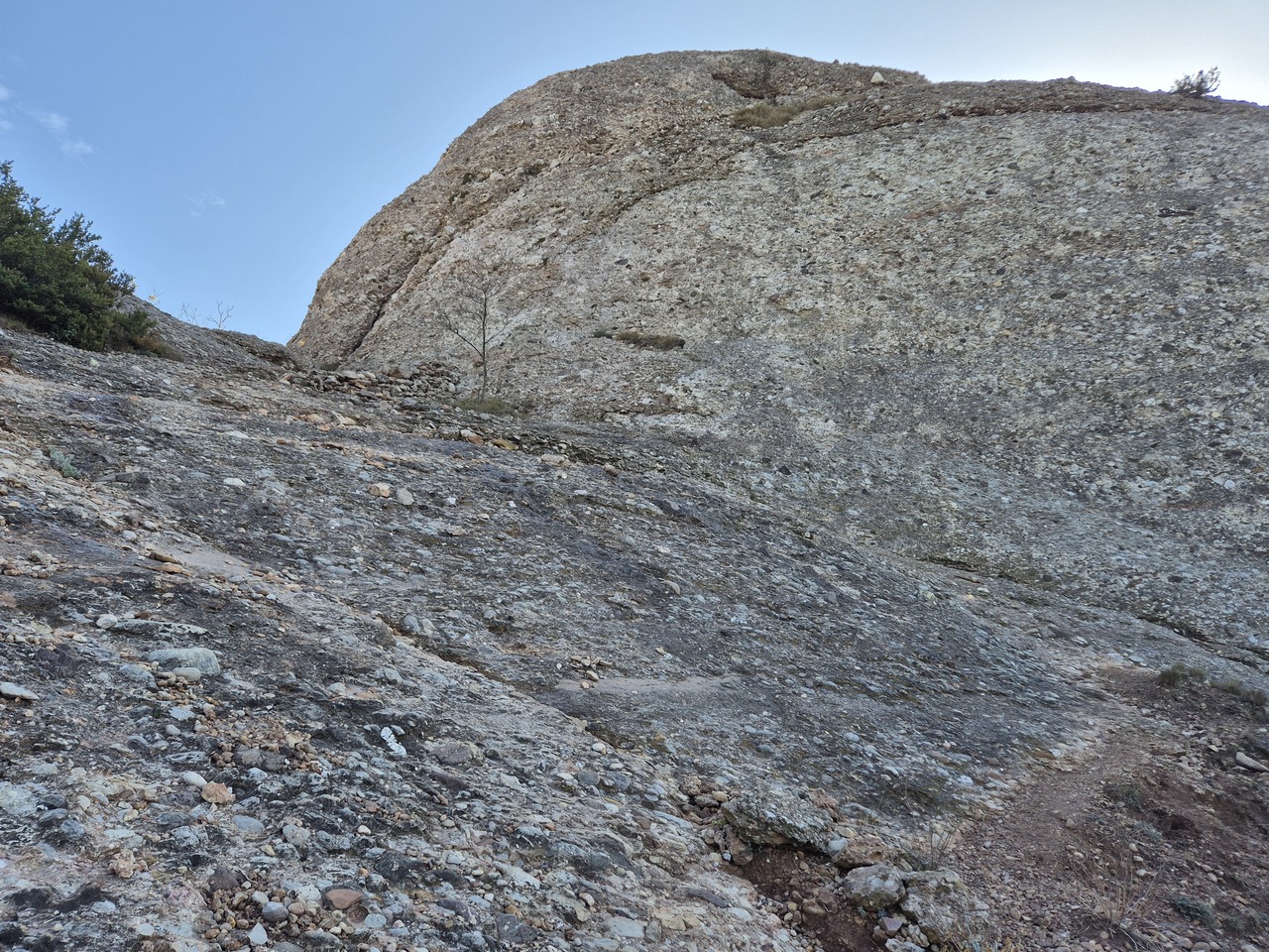 Dupa horn a urmat o mizerie de poteca spre vest pana la iesirea in poteca principala, marcata cu galben, putin mai la sud de Roca de les Lluernes. De aici continuarea este lejera; aici poteca urca spre o noua sa, putin mai la nord fata de Roca 517.