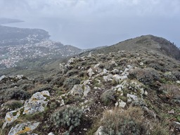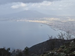 Din gara Vico Equense (circa 80m alt; langa Napoli) am urcat ceva mai mult de 900m diferenta de nivel pana sub vf. Faito, la cota 1000m; coborarea a fost cu autobuzul.