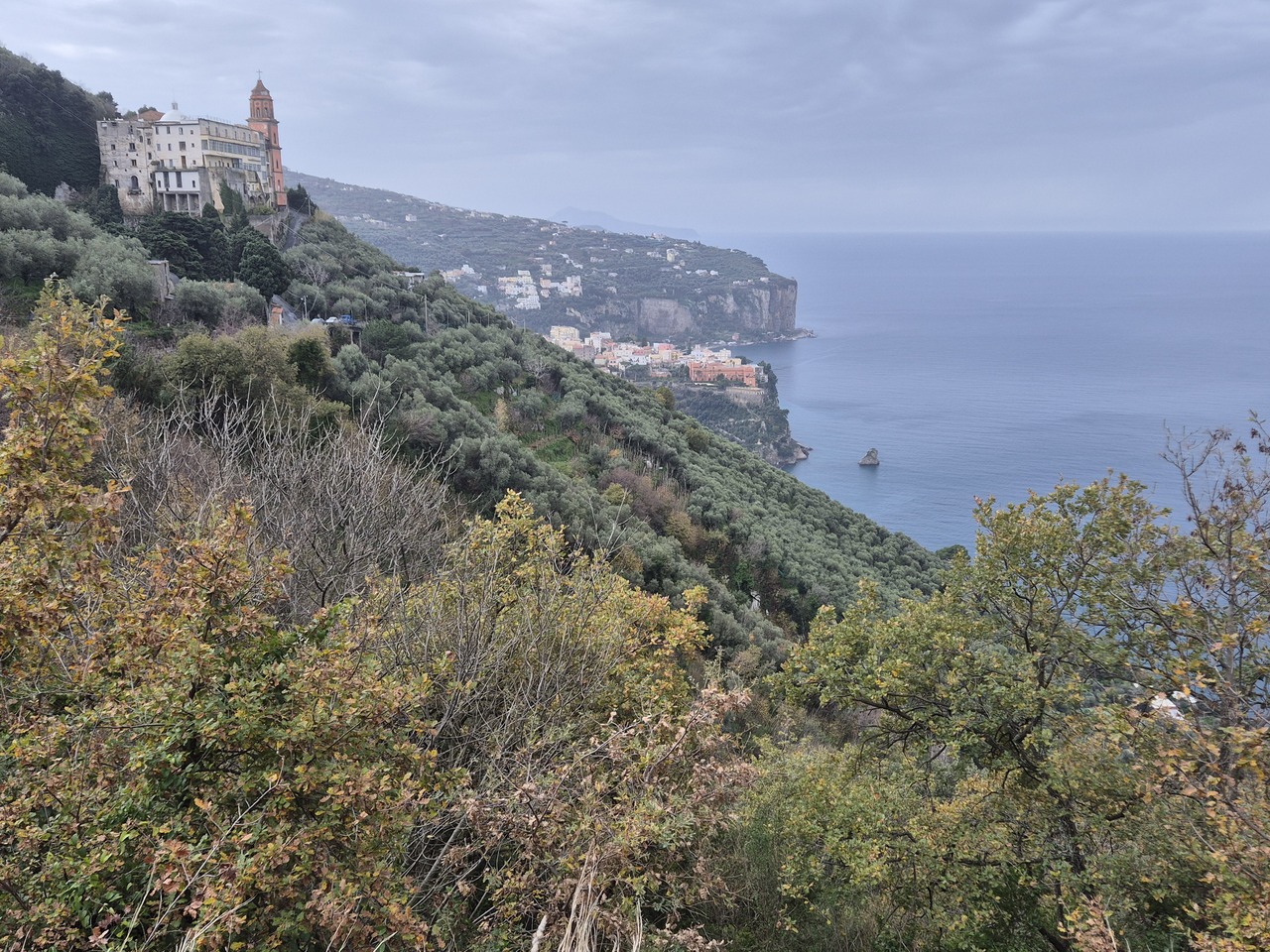 Am urcat in diagonala de la asezarea vizibila in centrul fotografiei; deocamdata pe drum asfaltat.