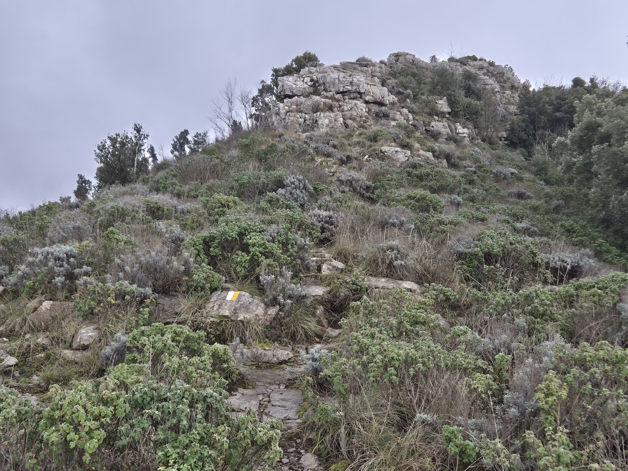 Dupa Capo d'Acqua s-a terminat padurea, urc pe aceasta culme care alterneaza pietroaie cu portiuni inierbate.