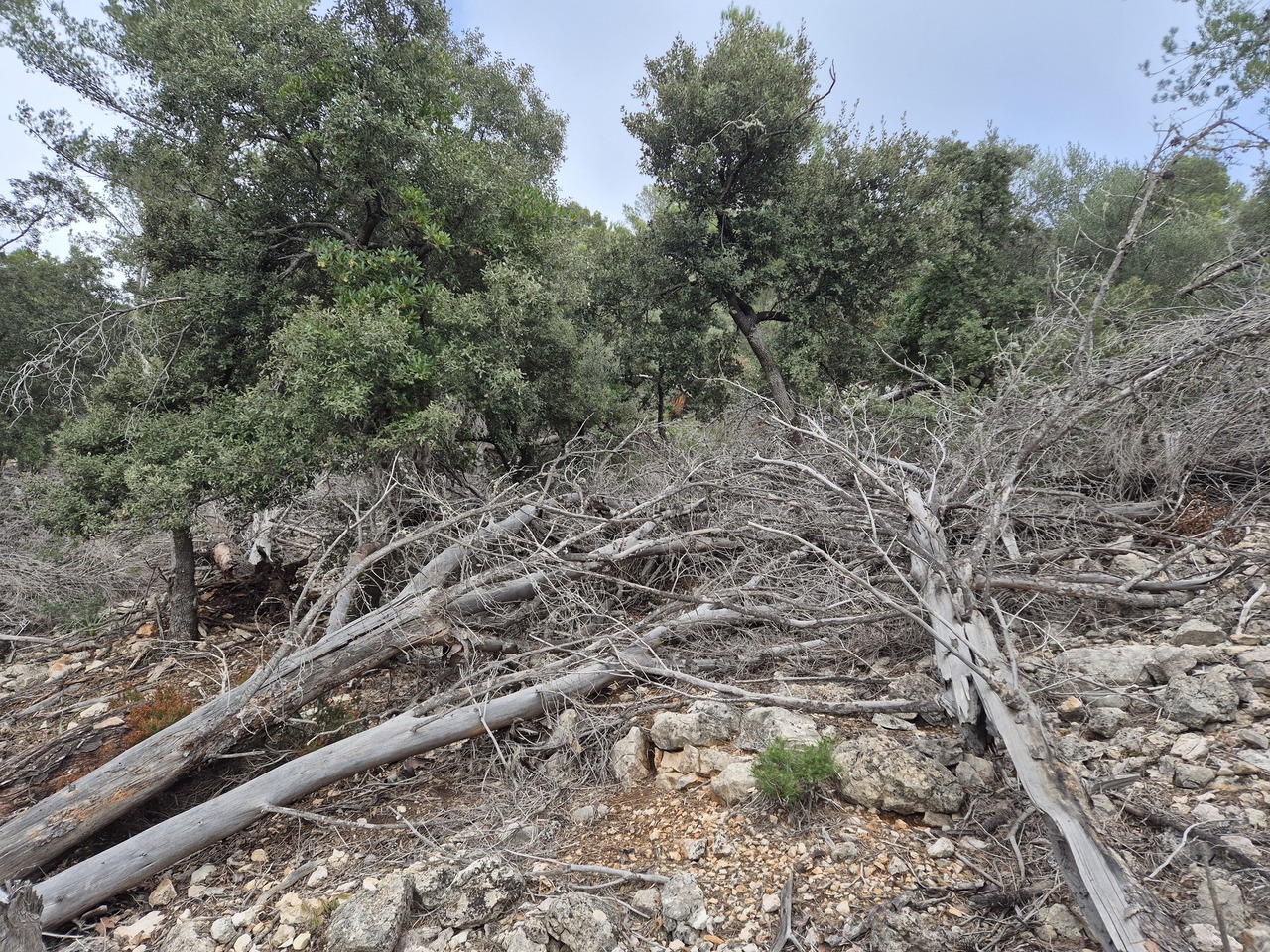 Cu niste copaci doborati de furtuna care faceau dificila inaintarea.