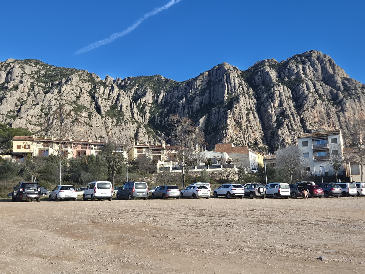 Din parcarea publica din Collbato. Vom merge pe acolo pe unde sunt acei munti, poteca se va strecura pe undeva pe unde s-o putea