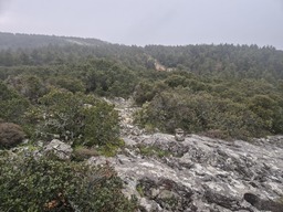 pana la circa 990m altitudine, in gardul unitatii militare din varful Evzonas