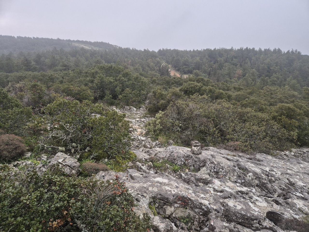 Pe traseul 17. Sunt din loc in loc momai si macar avem o poteca acum. Tot ploua dar nu mai este furtuna.
