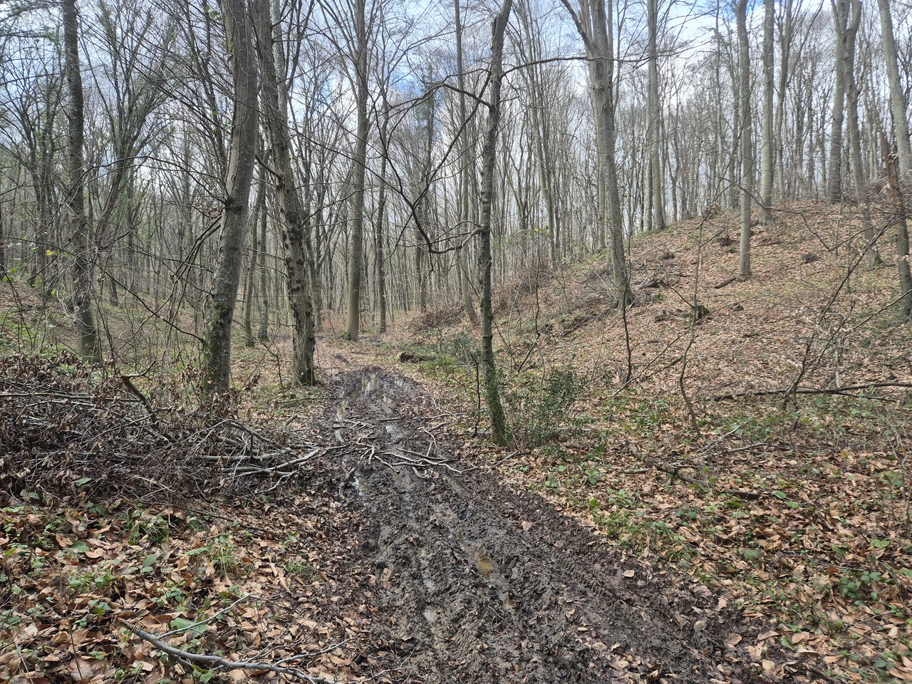 Uff, uff!! De aici inainte va fi plin de noroi. Potecile au fost folosite de nemernici cu ATV sau motociclete si s-au umplut de noroi. Naiba sa ii ia - si sa isi rupa gaturile!