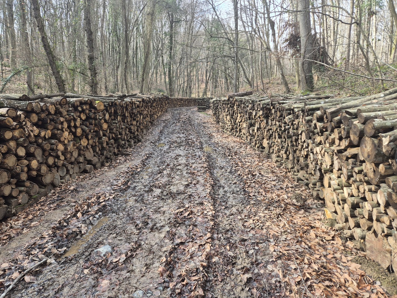 Iarasi soc si groaza - dupa cei 3.5km placuti pe zgura de pe malul lacului iata iarasi un drum plin de noroi; am preferat sa o luam pe langa, prin padure. Nu stiu la ce folosesc sirurile de lemne perfect aliniate de pe ambele parti.