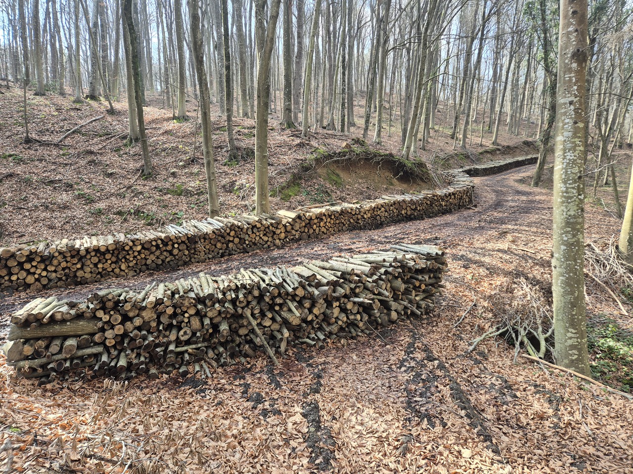 Am mai mers prin padure; de aici am mai incercat sa mergem direct pe stiva de lemne (un pic mai dificila inaintarea dar se poate).