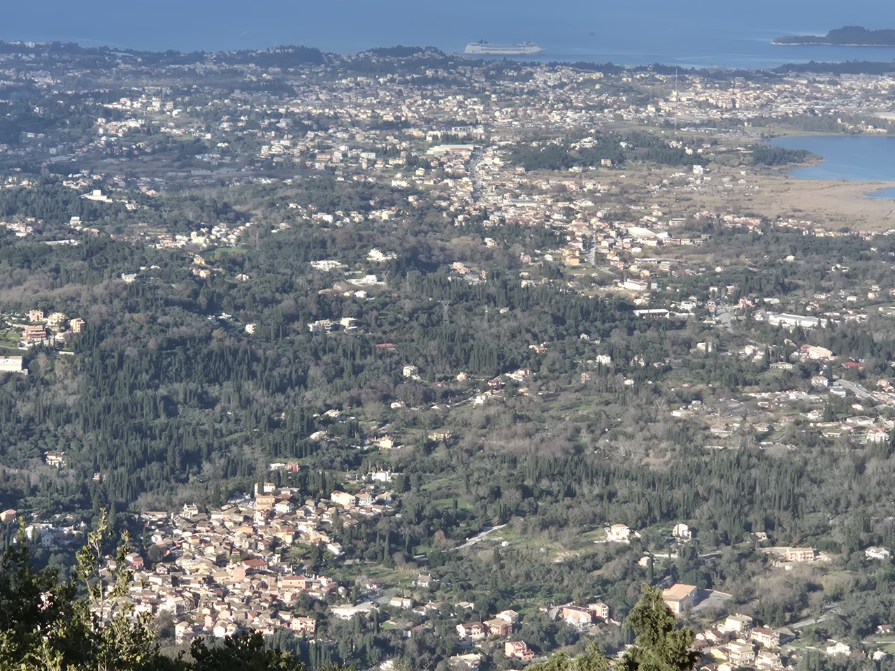 Satul Kinopiastes este jos in stanga iar nava noastra de croaziera, MSC Lirica, se vede departe.