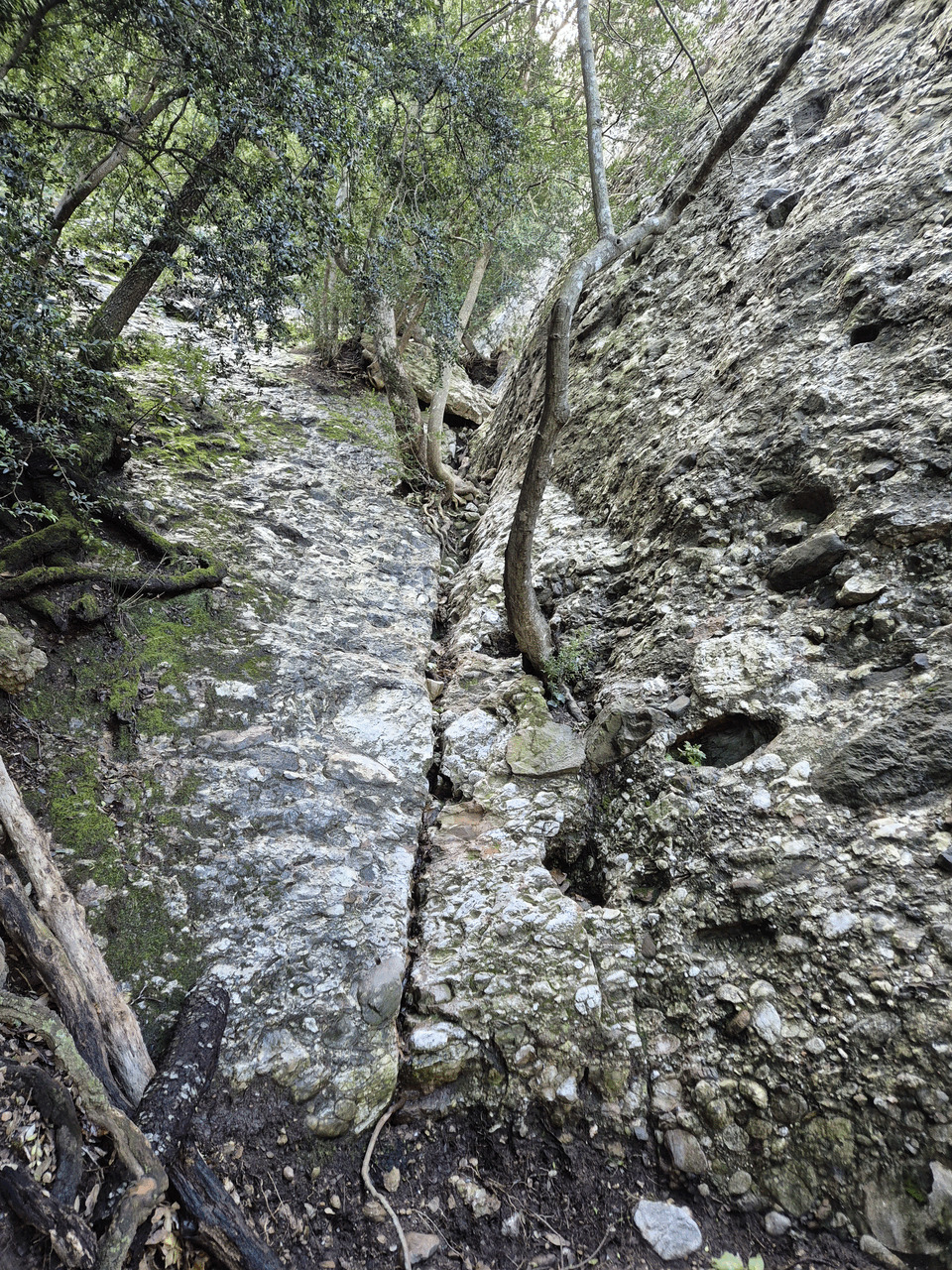 Pe unde am coborat, ajutandu-ma si de copacel.