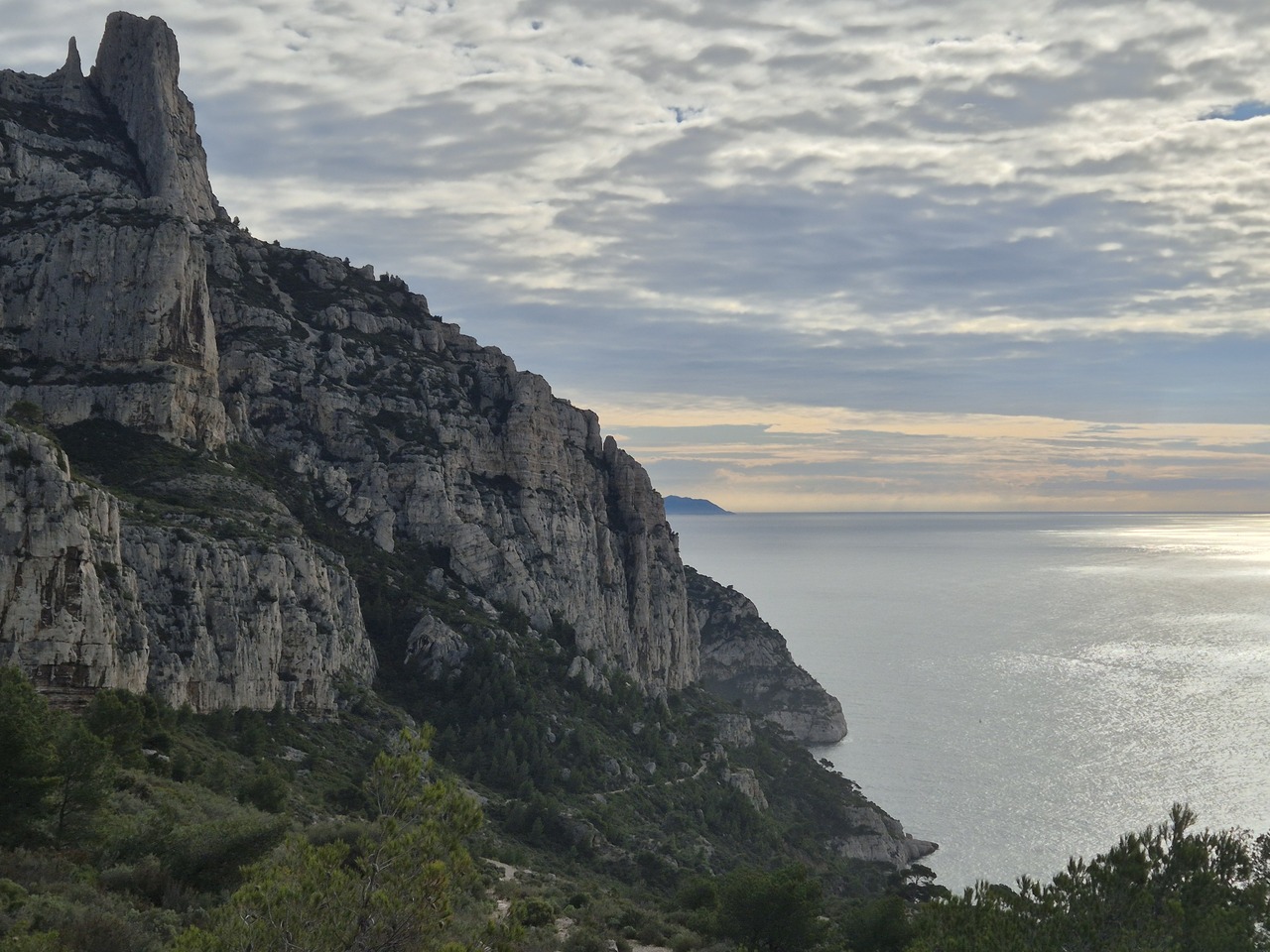 De pe poteca directa dinspre Luminy - Col de Sugiton catre Val Vierge; se si vede ceva mai jos in poza, ocolind masivul Candellon. Pe fisura intunecata din sus-stanga voi cobori peste cateva ore (dar nu stiam inca atunci cand am facut fotografia).