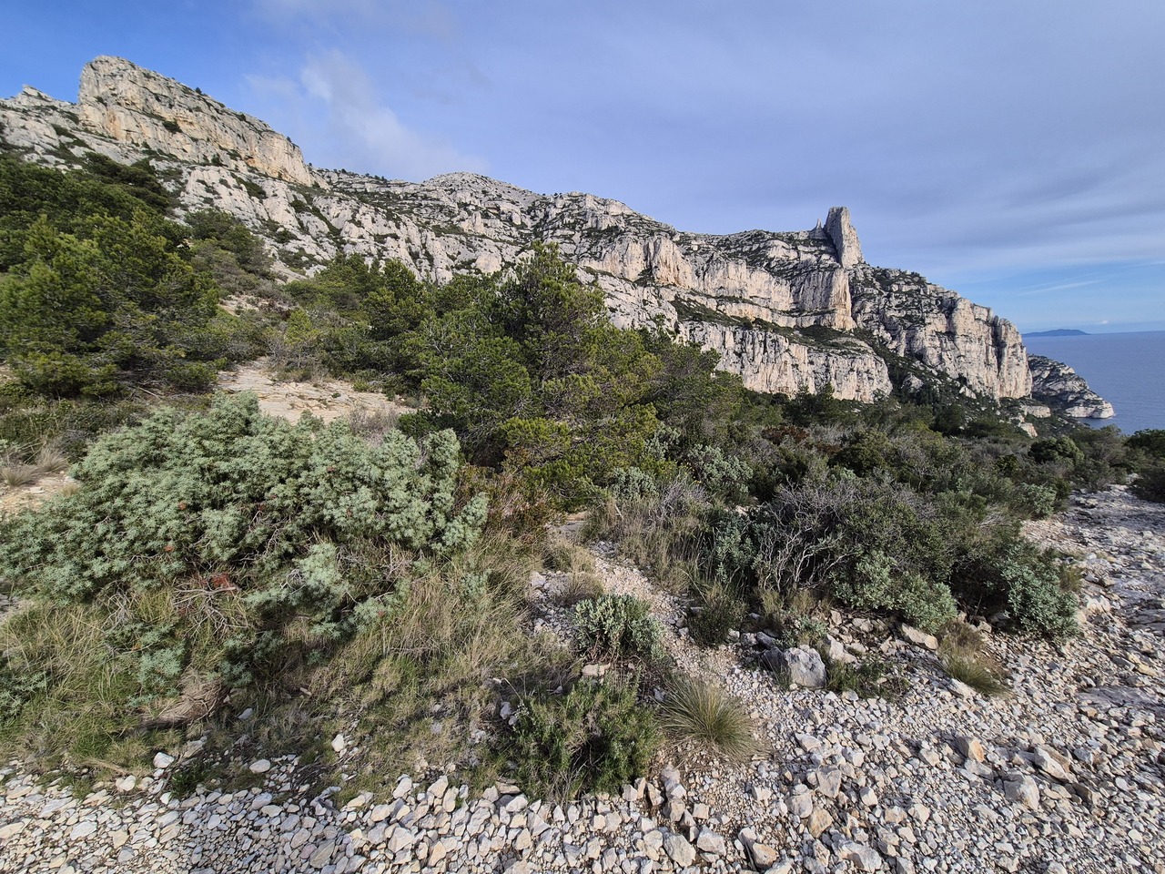 coborat pe creasta pana la baza Candellon-ului, varful izolat din dreapta. Am
