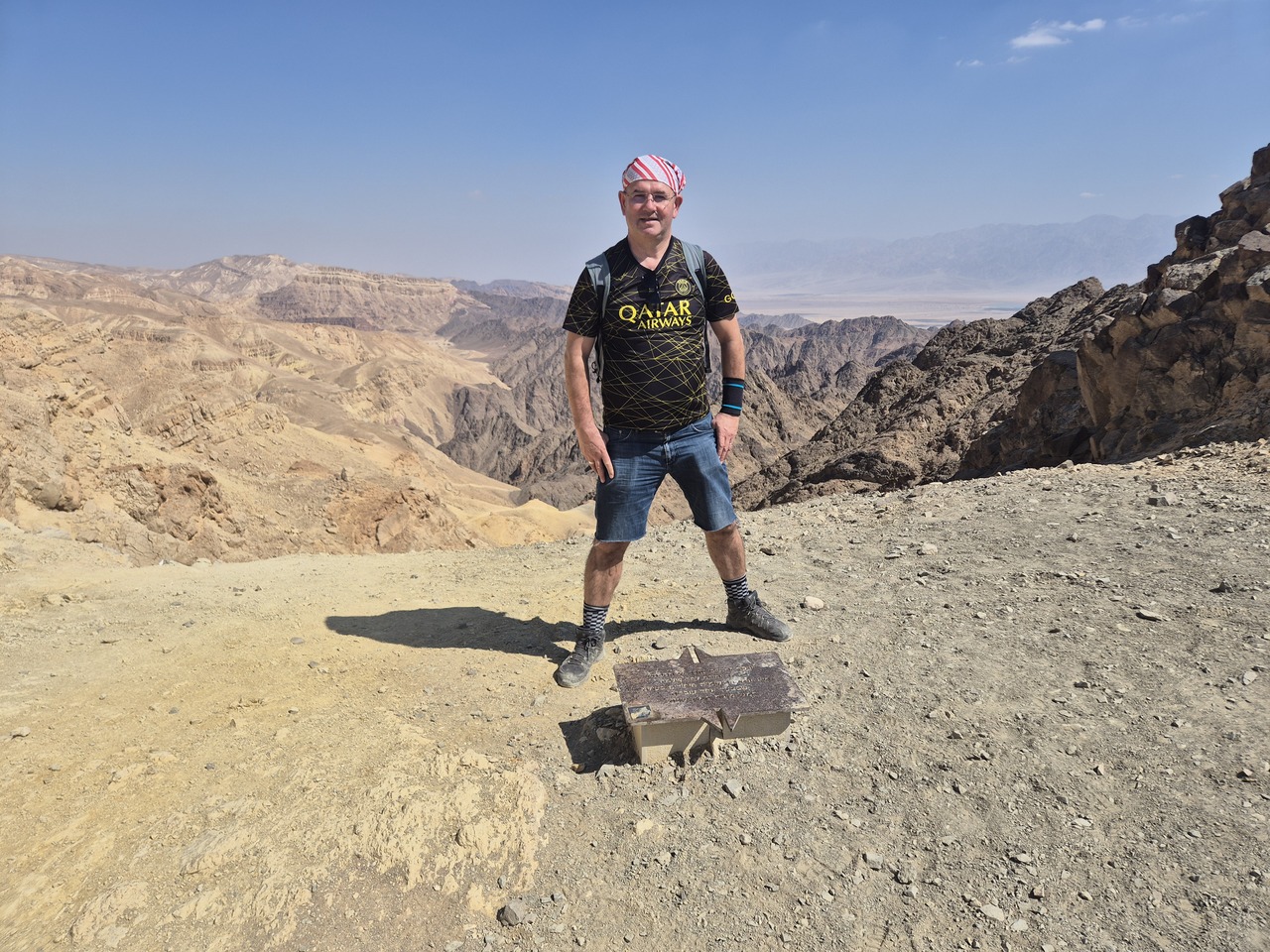 In saua bicolora ce separa muntii Yehoram de Shelomo. Placuta metalica