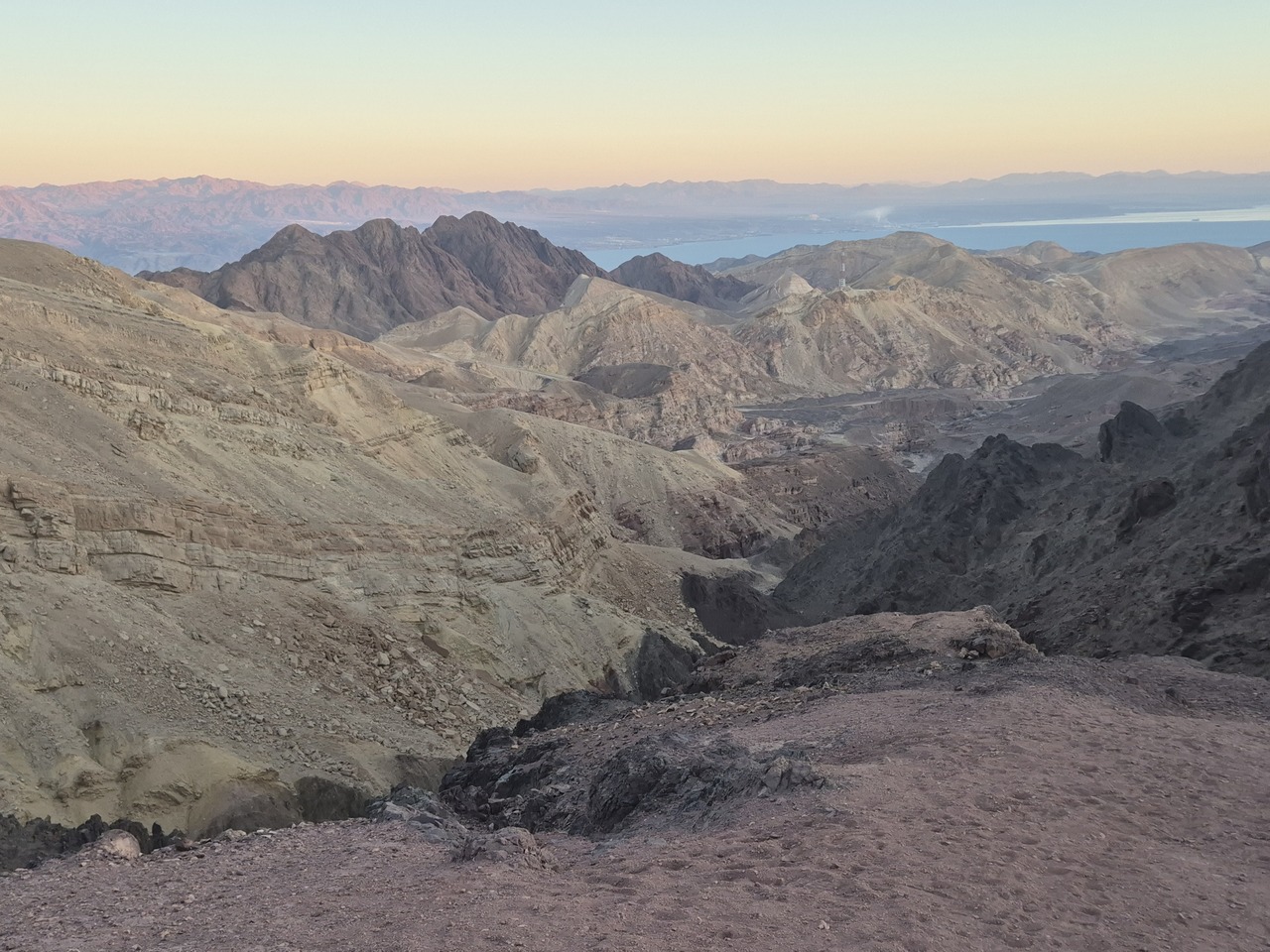 Trebie sa coboram tot valcelul; apoi vom mai urca putin prin fata muntelul ascutit de culoare deschisa pentru a cobori apoi la final in Highway 12.