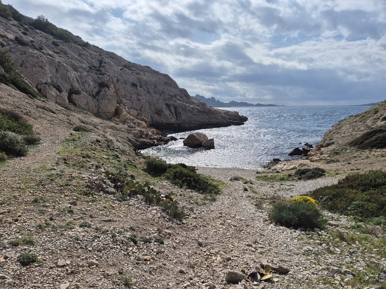Am trecut de doua ori prin Calanque De Podestat dar de ambele dati pe poteca ocolitoare, care ramane la inaltime (pe acolo le-am trimis pe fete); de data aceasta am preferat sa cobor in calanque, pe poteca mai scurta dar care coboara si apoi urca.