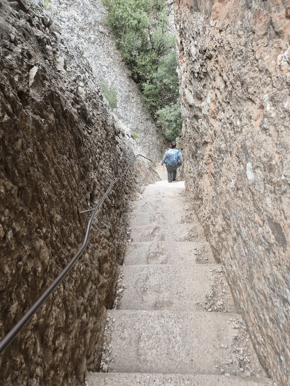 Am avut destul timp; aici coboram fara graba scarile de dinainte de a iesi la manastire.