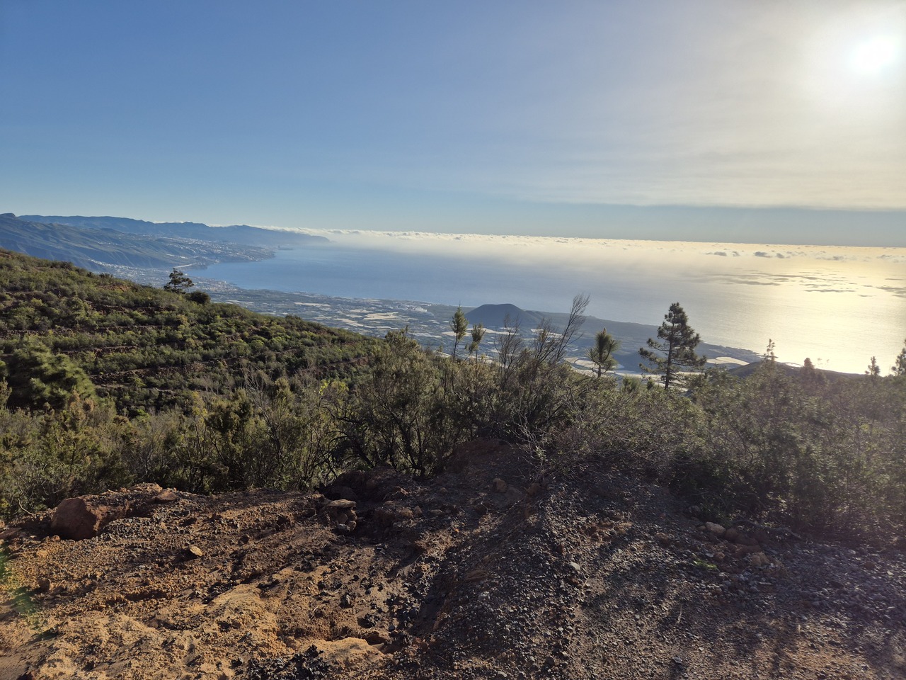 Am parcat masina la circa 880m altitudine, la sfarsitul asfaltului de pe Pista de Anocheza si urc pe drumul neasfaltat spre inceputul traseului, circa 1080m alt.