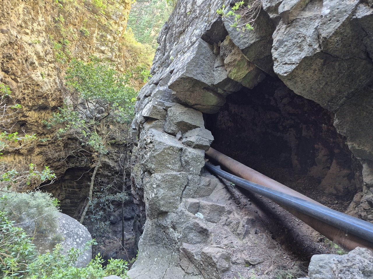 Cam pe la 1085m altitudine am iesit in Baranco de Badajoz; pana aici castigul de altitudine a fost neglijabil. In jos se vede o uriasa saritoare.