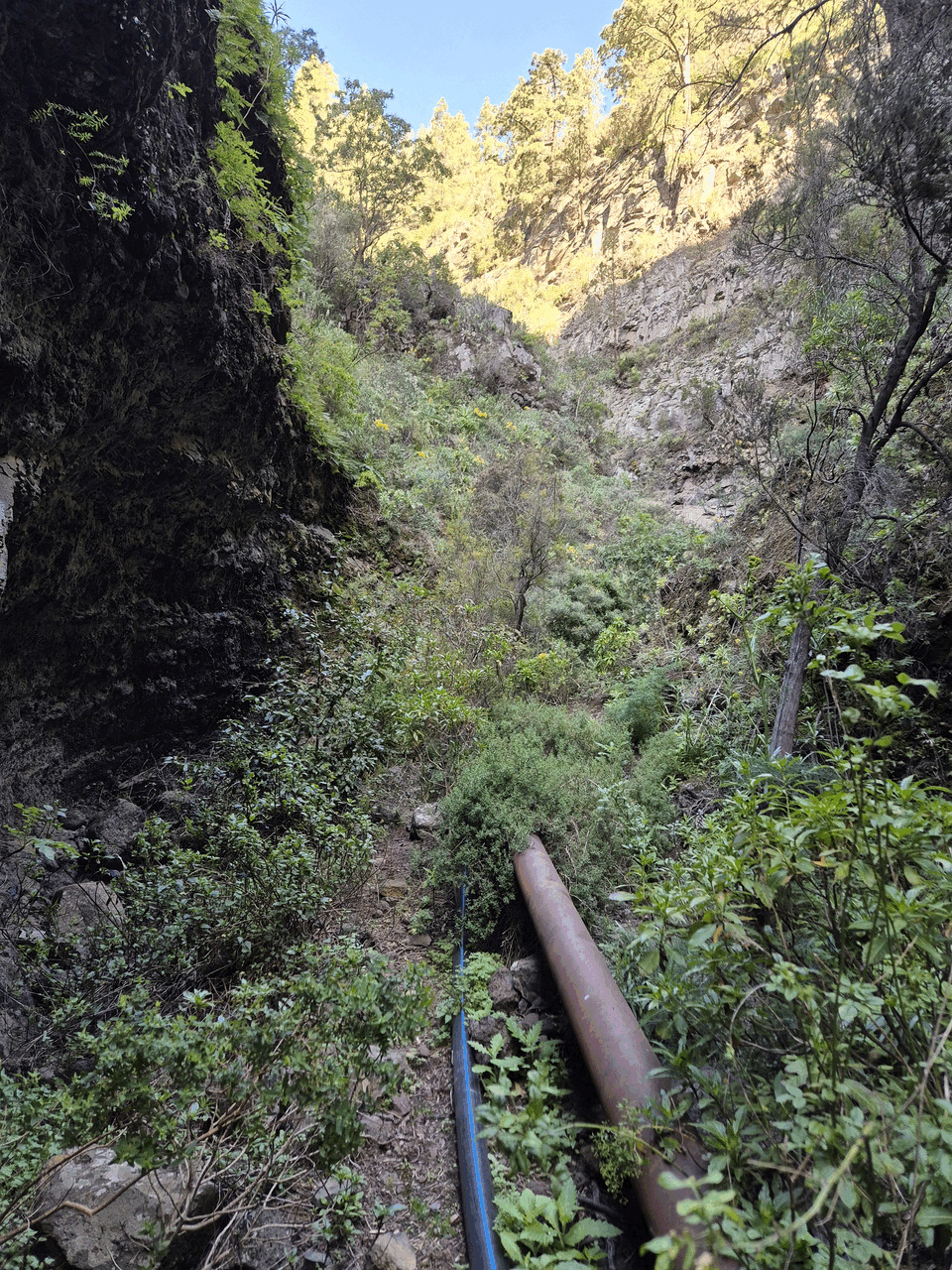 L-am urcat, pe langa vechea teava de fier (dezafectata) si cea de plastic (functionala) cam 140m diferenta de nivel.