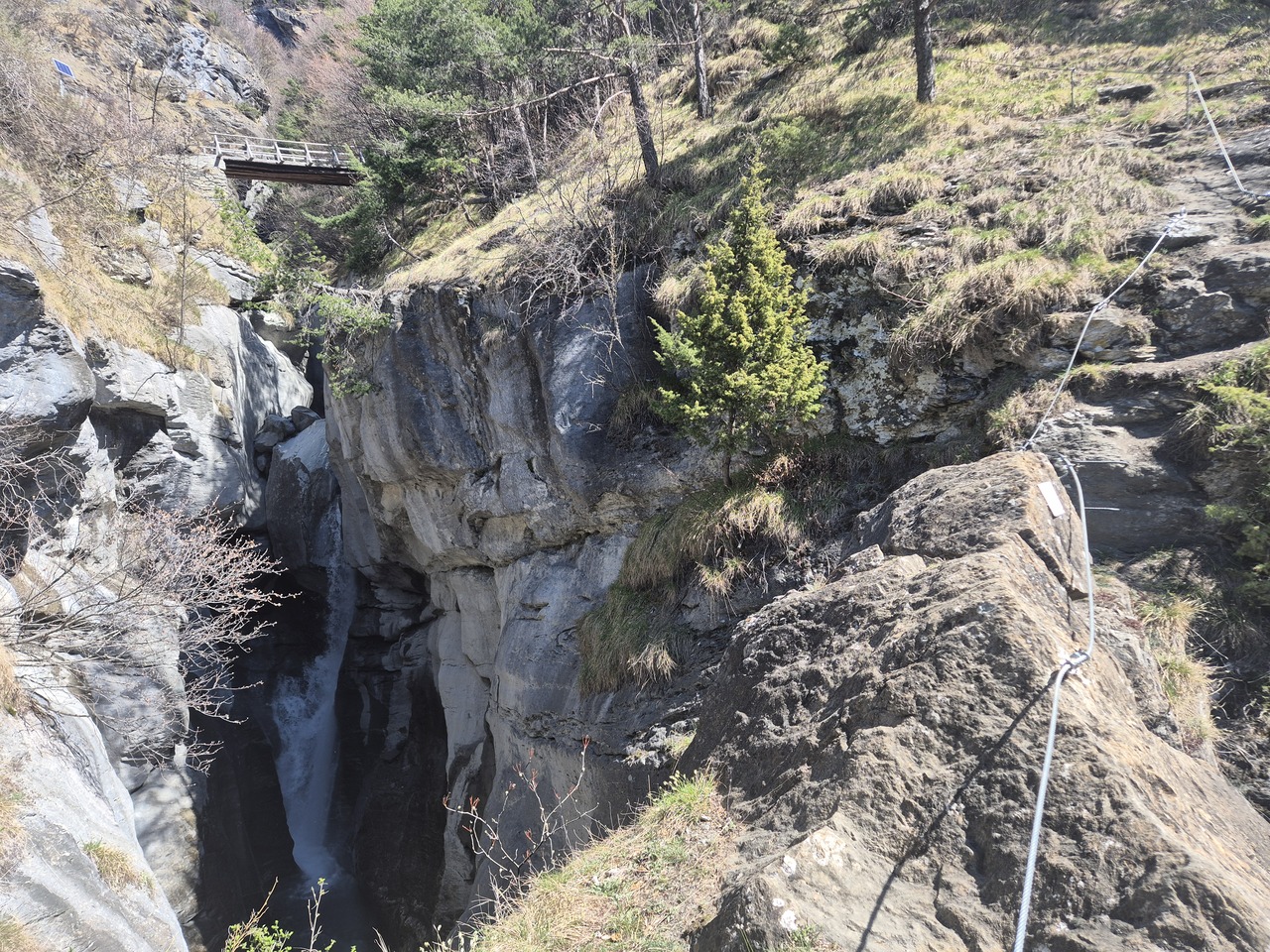 Se vad Ponte Alto (in dreapta jos) si podul potecii (in stanga-sus) unde traseul de ferrata va lua sfarsit.