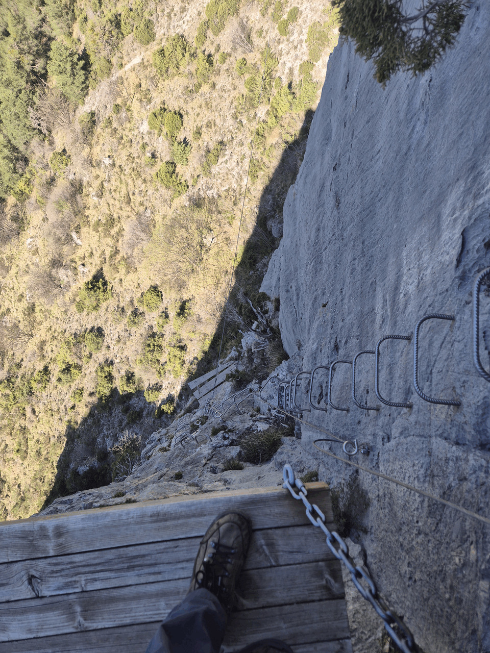 Pe vechea platforma, am de coborat pe scoabele nou instalate in dreapta spre noua platforma, abia vizibila jos.